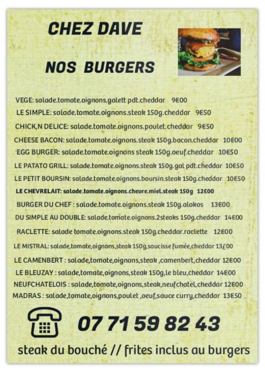 Dave se déplace à bord de son Food Truck pour vous offrir de succulents produits .