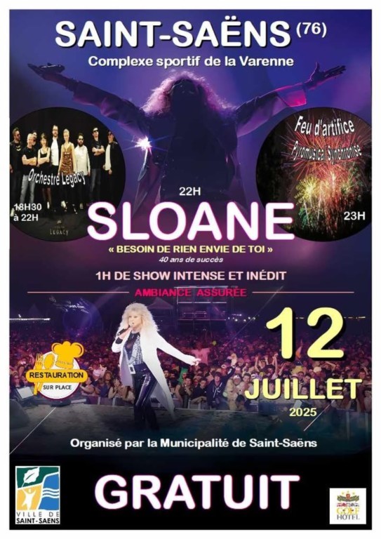 Chez Dave sera ravi de vous accompagner au concert de Sloane à Saint Saens le 12 Juillet